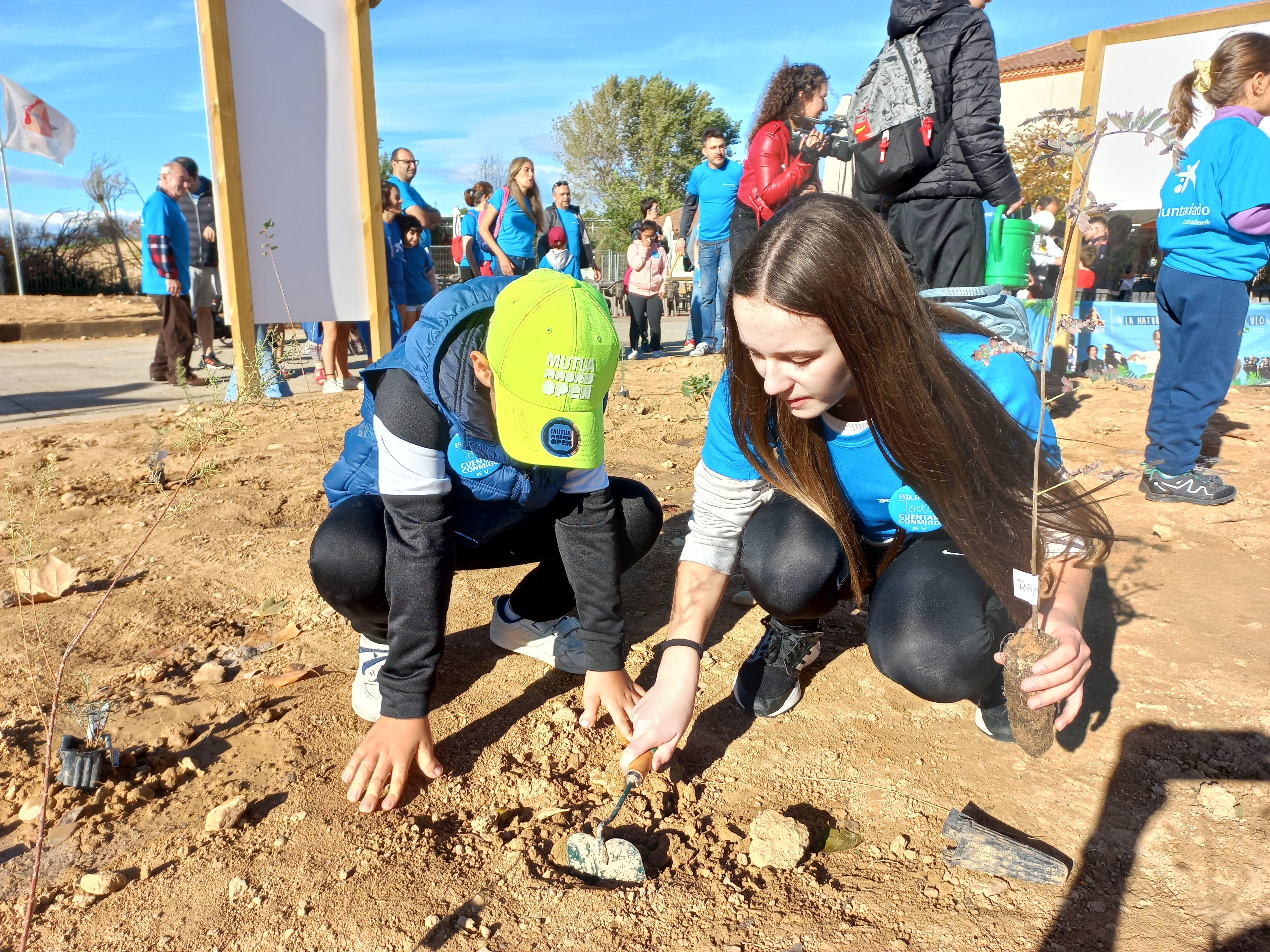 Voluntarios de CaixaBank y de Amimet replantan una zona del parque natural de Sendaviva que resultó calcinada este verano. Se trata de una acción de recuperación forestal que se enmarca en la Semana Social que organiza la entidad financiera para fomentar la colaboración con iniciativas sociales a través de 29 actividades de voluntariado.
