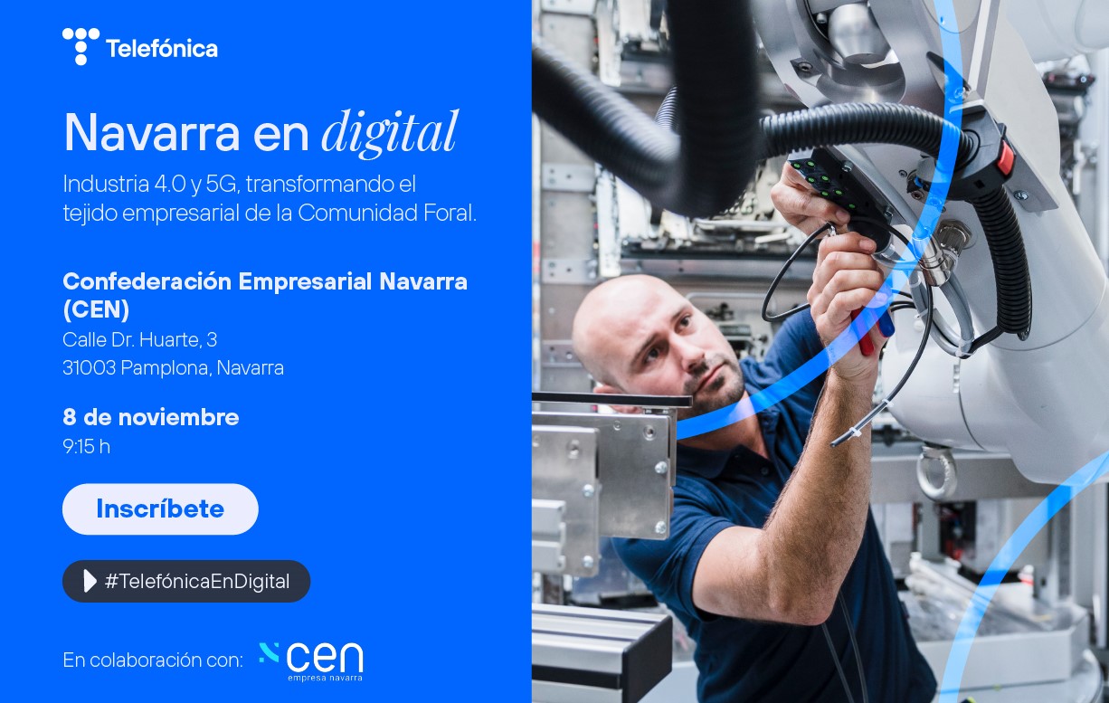Inscríbete a la jornada "Navarra en Digital: Industria 4.0 y 5G, transformando el tejido empresarial de la Comunidad Foral" organizada por Telefónica