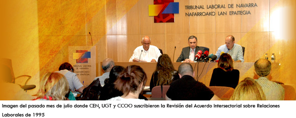 La Confederación de Empresarios de Navarra (CEN) y los sindicatos UGT y CCOO suscribieron, el pasado 25 de noviembre, el Acuerdo Interprofesional sobre Procedimientos Extrajudiciales de Solución de Conflictos Laborales de la Comunidad Foral de Navarra, por el que se actualiza el sistema de solución extrajudicial de conflictos laborales en Navarra. El acuerdo, ya registrado ante la autoridad laboral como es preceptivo, entrará en vigor a partir de su publicación en el Boletín Oficial de Navarra.