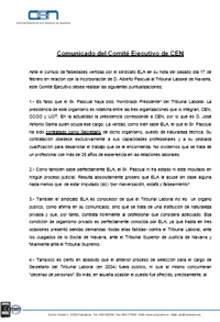 Descargar fichero relacionado Comunicado del Comité Ejecutivo de CEN ante las falsedades vertidas por ELA en relaciķn con el Tribunal Laboral