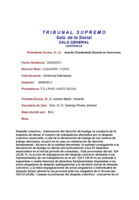 Esta sentencia, relativa al Grupo Prisa, se refiere a que, tras la desconvocatoria de una huelga, los trabajadores y la empresa pactaron un acuerdo por el que, si hubiera despidos, estos conllevarían una indemnización de 45 días por año trabajado. Sin embargo, “no se fijó un plazo de vigencia de ese acuerdo”. Posteriormente, se presentó un despido colectivo, que contemplaba indemnizaciones de 20 días. En la sentencia, el Tribunal Supremo apuntó que la empresa había vulnerado la buena fe de la negociación, ya que aquel pacto “tenía valor de convenio colectivo, y, de cara al despido colectivo, era vinculante”.