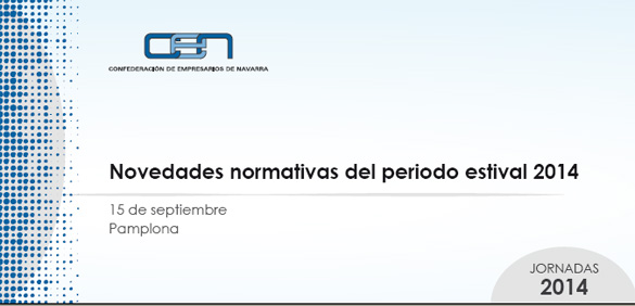 La sede de la Confederación de Empresarios de Navarra (CEN) acoge el próximo 15 de septiembre una jornada que explicará las "Novedades normativas del periodo estival 2014", a cargo de Guillermo Barrios, Catedrático de Derecho del Trabajo y de la Seguridad Social de la Universidad Rey Juan Carlos.