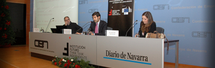 La charla deInstitución Futuro, que también estaba cofinanciada por la Comisión Europea, también contó con una breve intervención del delegado del Gobierno de Navarra en Bruselas, Ignacio Baleztena, que explicó las líneas del programa Horizonte 2020 (H2020) de la Comisión. Entre los objetivos de este plan, destacan algunos como el “liderazgo industrial” o el “fomento de proyectos de innovación en las pymes europeas”. Para ello, se pretenden fomentar herramientas para, por ejemplo, el acceso a la financiación.