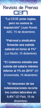 “El Gobierno estudia una subida del salario mínimo inferior al 1% en 2015” (El Economista, 15 de diciembre)