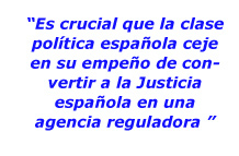 En esta línea, el IEE advierte de que “es crucial que la clase política española ceje en su empeño de convertir a la Justicia española en una agencia reguladora: los jueces tienen ventajas comparativas para juzgar, con la ley en la mano. Pero no están óptimamente situados para realizar las funciones de una agencia reguladora ni, en general, para implementar políticas sociales”.