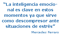 Ferraro señaló que “la situación actual es complicada: la crisis golpea con fuerza a todos los sectores del país y los trabajadores están siendo los primeros afectados. La inteligencia emocional es clave en estos momentos ya que sirve como descompresor ante situaciones de estrés”. La directora expuso que “el individuo debe intentar prevenir cualquier situación de estrés aprendiendo a canalizar sus emociones”. En caso de que sea tarde y esa situación de estrés ya sea una realidad, debe buscar las fórmulas para darle salida a esas sensaciones negativas”.
