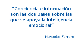 Conciencia e información son las dos bases sobre las que se apoya la inteligencia emocional, según Ferraro. Cada individuo debe reconocer sus propias emociones, canalizarlas y hacerlas salir para así poder empezar a gestionar las emociones de los demás- dijo la psicóloga.