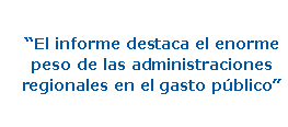 El documento reconoce el “enorme peso de las administraciones regionales en el gasto público y su papel dominante en la gestión de los principales servicios públicos”, por lo que “la responsabilidad de ejecutar muchos de los ajustes necesarios recae en principio sobre unos gobiernos regionales que no están precisamente acostumbrados a tomar decisiones de este cariz”.