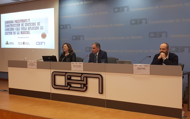 En este encuentro, los empresarios han abordado las claves de la construcción Passivhaus, caracterizada por sus “edificios de consumo casi nulo” (ECCN), y que se está impulsando tanto en el ámbito europeo como en Navarra, que es referente nacional en este sentido. La jornada se ha focalizado en el papel que juega la madera en esta tendencia, que, gracias a sus propiedades, como el aislamiento térmico o acústico, tiene grandes utilidades.