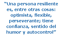 Una persona resiliente tiene una serie de cualidades. Según Gaztelu: “una persona resiliente es, entre otras cosas: optimista, flexible, perseverante; tiene confianza, sentido del humor y autocontrol”. Vemos como sólo desde la lógica no se pueden tratar algunas situaciones. Además, sólo se es resiliente, o se actúa de manera resiliente cuando se está sometido a la adversidad.
