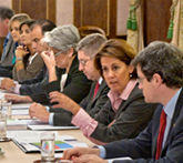 Así, la Presidenta de la Fundación, Yolanda Barcina, presentó a los patronos designados por el Gobierno de Navarra en representación del Ejecutivo en su sesión del pasado 31 de agosto: el vicepresidente primero y consejero de Presidencia, Administraciones Públicas e Interior, Roberto Jiménez Alli; el vicepresidente segundo y consejero de Economía y Hacienda, Álvaro Miranda Simavilla (ambos también miembros del Comité Permanente de la Fundación); y el consejero de Educación, José Iribas Sánchez de Boado.