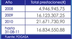 Las cuantías del total de las prestaciones del Fondo de Garantía, Fogasa, han registrado un fuerte incremento en los últimos años.