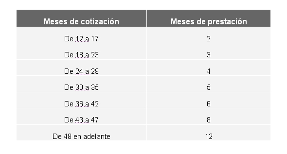 La norma detalla que la duración de esta prestación estará en función de los períodos de cotización previstos en el artículo 8 de la Ley 32/2010, con arreglo a lo siguiente: