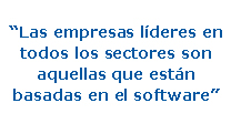 Otra línea de negocio hacía la que se están encaminando las compañías es el software. Alfons Cornella enumeró empresas líderes en todos los sectores que están basadas en el sofware: Amazon en lo editorial, Netflix en vídeos, Itunes o Spotfy en la música, Pixar en el cine de animación, Groupon en el comercio minorista, Skype en la telefonía, Linkedin en búsqueda de talento, etc.