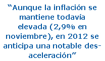 El PIB del tercer trimestre en Europa ya refleja esta desaceleración de la actividad, aunque se observa una gran dispersión en la evolución de las distintas economías. Así, frente al crecimiento moderado de Alemania, Francia y Reino Unido, España está a las puertas de una recaída a corto plazo, mientras que Portugal y Grecia siguen sumidas en la recesión. En esta situación, el Banco Central Europeo ha bajado de nuevo los tipos de interés hasta dejarlos en el 1 por ciento y amplió la liquidez a los bancos con las subastas a 36 meses. La disciplina fiscal es el eje central de las políticas europeas para generar confianza en lso mercados y superar la crisis de deuda soberana.