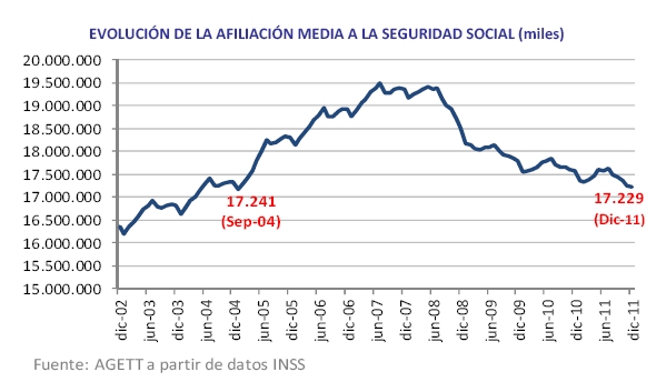 Sin embargo, el balance de 2011 arroja un aumento de 322.286 parados registrados, mientras que en el peor año de la crisis (2009), el mismo periodo presentó un incremento de 794.640. No obstante, si comparamos las cifras de la anterior crisis con la actual se observa una considerable diferencia en el número de pérdida de afiliados a la seguridad social.