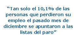 El último Informe AGETT sobre afiliación, contratación y paro registrado afirma que tan solo el 10,1% de las personas que perdieron su empleo el pasado mes de diciembre se apuntaron a las listas del paro. También destaca la bajada de la afiliación en 18.609, ya que es la menor caída en un mes de diciembre desde que comenzó la crisis (julio de 2007).