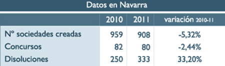 En 2011 se han incrementado los cierres de empresas en Navarra por disoluciones, con un crecimiento del 33% respecto a 2010, mientras que por concurso, los ceses se han mantenido estables en torno a los 80.