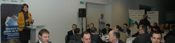 La Asociación para el Progreso de la Dirección (APD) y Deloitte organizaron, el pasado 2 de marzo, la jornada "Navarra en la salida de la crisis. Inversión y confianza para un nuevo impulso" en colaboración con la Confederación de Empresarios de Navarra (CEN), que ha contado con numerosas personalidades de ámbito político y económico de la Comunidad Foral. Entre los ponentes, intervino el presidente de CEN, José Antonio Sarría, que señaló que "las empresas crean riqueza a través del empleo y los impuestos, por tanto, constituyen un bien que a todos nos interesa conservar y acrecentar".