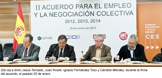 Precisamente, CEOE, CEPYME, UGT y CCOO suscribieron, el pasado 25 de enero, el "II Acuerdo para el empleo y la negociación colectiva 2012, 2013 y 2014". El acuerdo no sólo garantiza la moderación salarial, sino que contempla distintos aspectos de flexibilidad y de la estructura de los convenios colectivos.