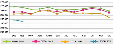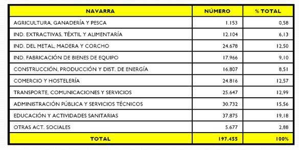 Según los últimos datos publicados por la Tesorería General de la Seguridad Social – Dirección Provincial de Navarra, el régimen que más trabajadores ha perdido en el último año en Navarra ha sido el Régimen General al contabilizarse 197.455 trabajadores a 29 de febrero de 2012 mientras que finales del mes anterior había 199.825 afiliados en este mismo régimen.
