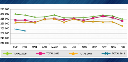 En cambio, si comparamos el número de autónomos en nuestra comunidad, el balance ha sido positivo en el mes de febrero, al contabilizarse 172 autónomos más que en enero. Por el contrario, desciende el número de afiliados en el régimen agrario. Sin embargo, el régimen del hogar experimenta un importante crecimiento y se eleva por  primera vez en los últimos años por encima de los 5.000 trabajadores.