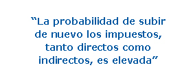 Dejando al margen las distorsiones que introduce la liquidación del nuevo sistema de financiación autonómica de 2010, el informe estima que los ingresos impositivos superen en un 4,3% la recaudación de 2011, debido a la efectividad de las medidas de consolidación fiscal antes comentadas. El exceso de optimismo de las previsiones de ingresos en la elaboración de los Presupuestos de 2010 y 2011, llevó a la necesidad de adoptar medidas adicionales de subidas de impuestos para tratar de contener el déficit público. Teniendo en cuenta los precedentes y si la ejecución presupuestaria en 2012 se desvía del objetivo previsto (hasta febrero el déficit del Estado se situaba ya en el 2% sobre el PIB), la probabilidad de subir de nuevo los impuestos (tanto directos como indirectos) es elevada.