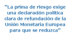 CEOE también explica por qué la ayuda financiera a España no calmó los mercados una vez acordada, y de que la prima de riesgo española siguiera subiendo. “Entre otras cuestiones, aún se desconocen las condiciones del préstamo que recibirá el FROB, así como el mecanismo que proporcionará dicha financiación”. Por otra parte, “el aumento de la prima de riesgo también es consecuencia de una cuestión más general que concierne a la supervivencia de la zona euro y que, por tanto, exige una declaración política clara de refundación de la Unión Monetaria Europea para que se reduzca”.