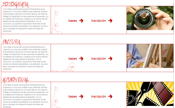Cruz Roja en Navarra organiza la cuarta edición del concurso artístico "mostrARTEnavarra", una iniciativa que persigue la integración en el mercado laboral y, en el conjunto de la sociedad, de las personas inmigrantes, así como el desarrollo profesional de las personas en situación de vulnerabilidad.