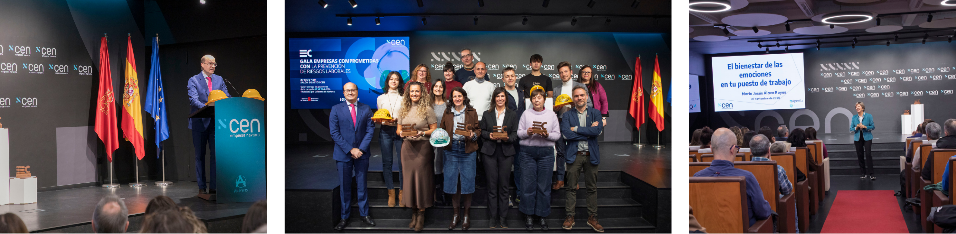 En CEN hemos celebrado la I Gala de Empresas Comprometidas con la Prevención de Riesgos Laborales, dentro de la campaña «¡VÍ VE TE!» para promover la salud y seguridad en el trabajo. La jornada contó con la ponencia de María Jesús Álava sobre la dimensión emocional de la salud laboral y la entrega de premios del Kit Creativo como finalización de la campaña de concienciación y sensibilización, que reunió más de 50 cascos personlaizados por empresas para sensibilizar de manera innovadora a sus plantillas de trabajo.Los Premios a las Empresas Comprometidas con la Prevención, recayeron en: 1º Premio: TABAR, 2º Premio: MONDELEZ y 3º Premio (empate): HR MOTOR e IBCONNECT. Con esta gala hemos querido poner en valor la creatividad, la implicación y la corresponsabilidad de empresas y trabajadores en la construcción de entornos laborales más seguros.
